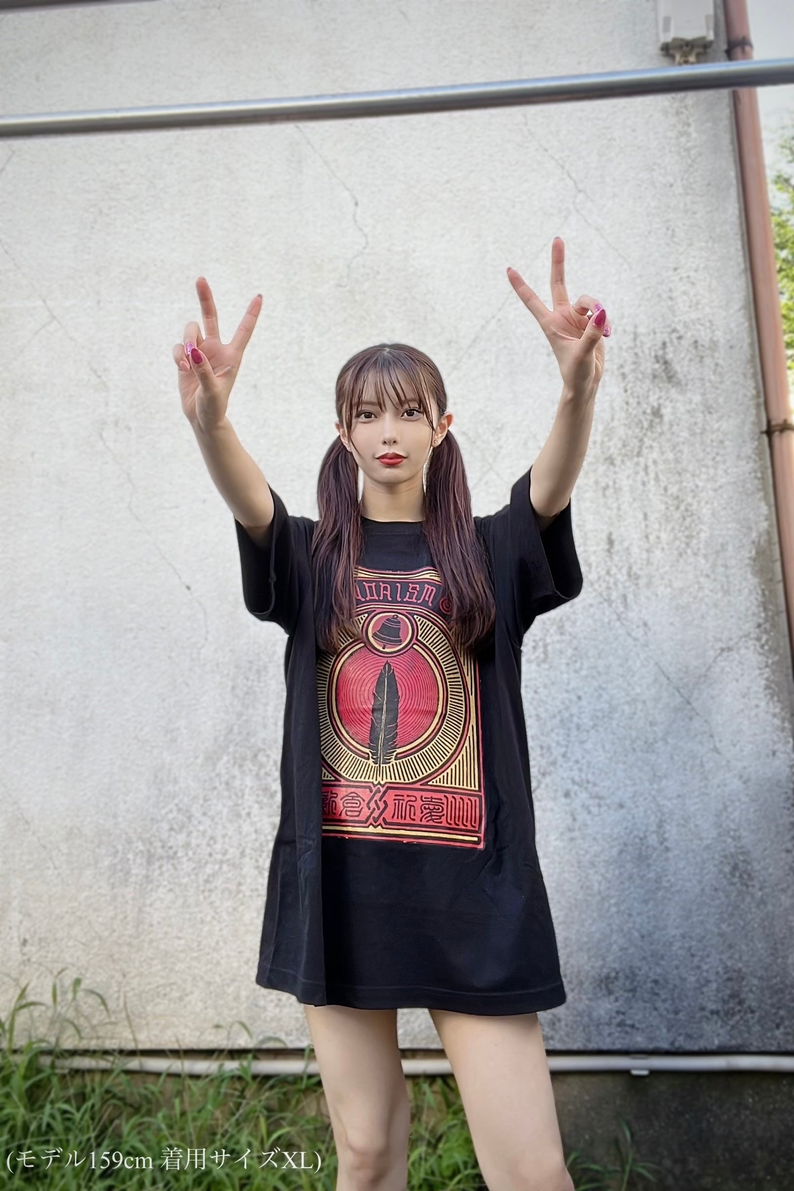 モデルは身長159cmで黒はXL、白はLを着用しています!ご参考に〜〜!!